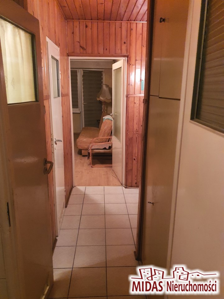 Na podłodze w pokojach panele a w przedpokoju, kuchni, łazience,wc gres. Na ścianach w pokojach malowane, w przedpokoju boazeria a w kuchni, łazience i wc glazura. Okna PCV.