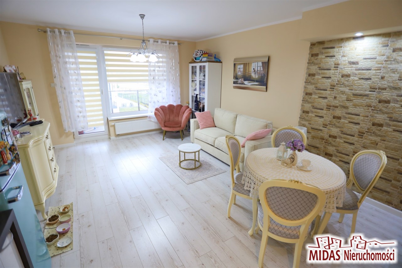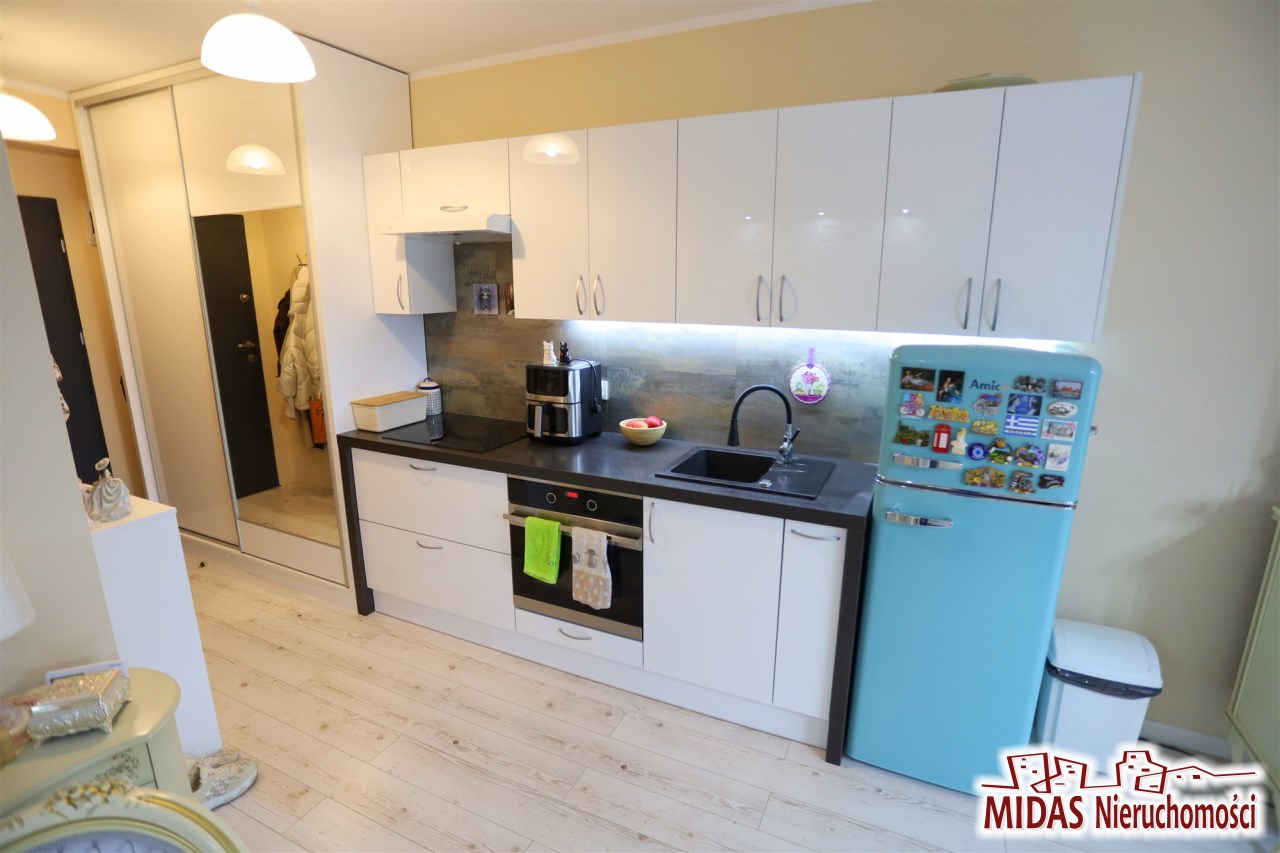 W pokojach na podłodze panele podłogowe, na ścianach gładzie, łazienka nowocześnie wykończona i wyposażona. Aneks kuchenny z nowoczesną zabudowa kuchenną z płytą indukcyjną, piekarnikiem, zmywarką i lodówką. W przedpokoju szafa w zabudowie.