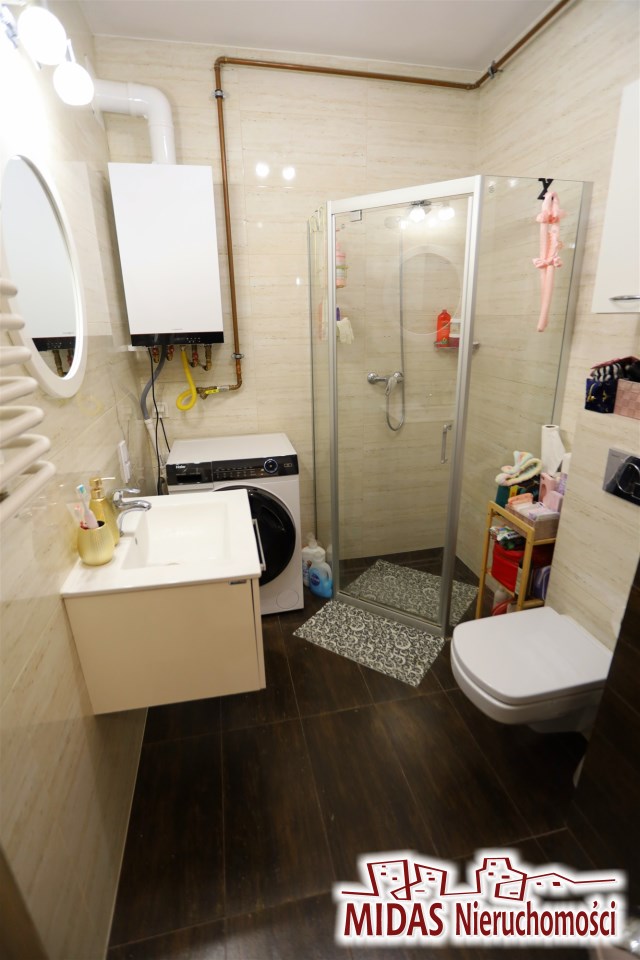 | Wyposażenie łazienki | lustro, natrysk, pralka, umywalka, WC |